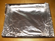 Skardą derėtų iškloti kepimo popieriumi, bet neapdairioms šeimininkėms, pasirodo, kartais jis pasibaigia ir yra laiku nepapildomos jo atsargos. Gėda, gėda, bet teko naudoti foliją. Nebuvo taip blogai, kaip tikėjausi, – kad jos neis atkrapštyti nuo pyrago, – bet vis tiek būna sėkmingesnių patiesalų.